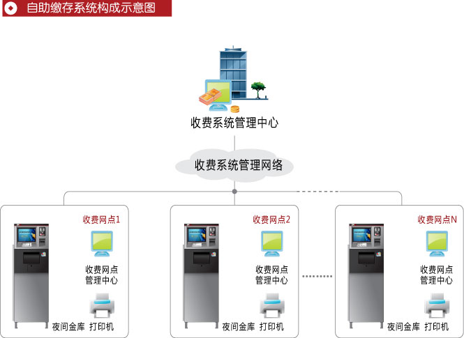 自助缴存系统是厦门积硕科技在国内首创的以“夜间金库”设备为核心的一套网络化营收现金及票证管理系统,用户营业网点收银员只需自助操作,将现金及票据装入专用包投入“夜间金库”内,网络化管理系统进行相关数据的后台存储、统计等,可实现上级管理部门对多个营业网点现金缴存的实时监控、统计、报表等管理功能,收银员完成自助存入后银行工作人员可在合适的时段从“夜间金库”中提取专用包运回银行金库,背对背完成用户与银行间的现金票据交接工作。